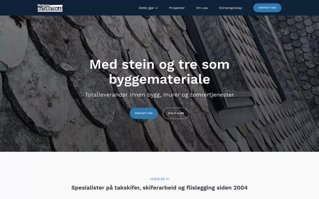 Se nettsiden herNorheim Naturstein er en veletablert aktør i skiferbransjen med base i Oppdal – kjent for førsteklasses råvarer og håndverkstradisjoner. Med spesialisering innen skifertak, muring, naturstein og rehabiliteringsarbeid, ønsket de en nettside og digital tilstedeværelse som reflekterte både deres faglige tyngde og geografiske rekkevidde.